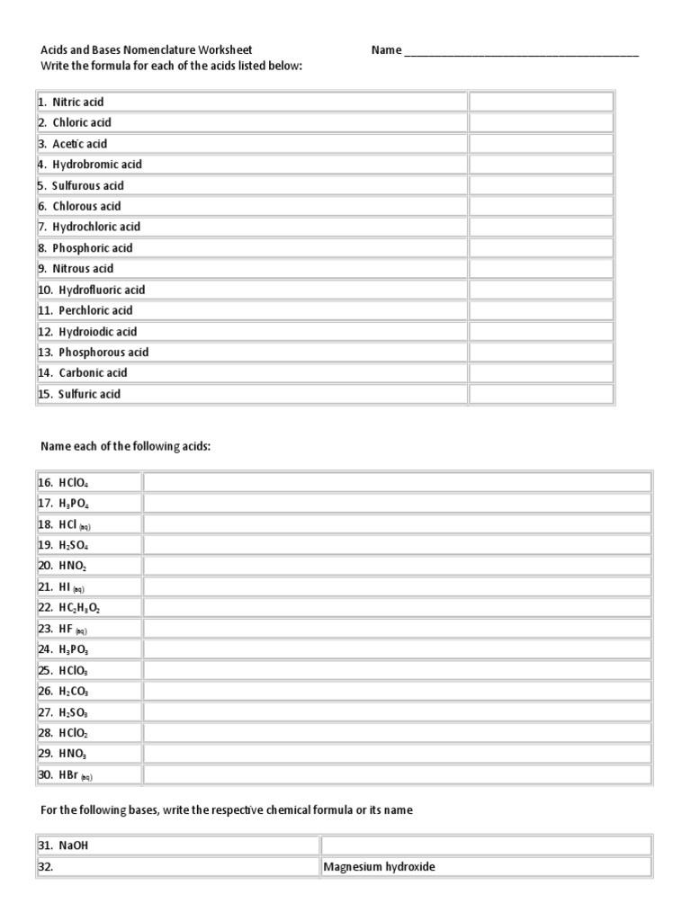 Acid Nomenclature Worksheet : Acid Base Nomenclature Worksheet Printable Worksheets And Activities For Teachers Parents Tutors And Homeschool Families : If you have any questions, please feel free to ask in class or during office hours.